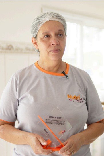 A Nutri Master tem um significado especial para Dona Elda, pois foi ali que ela encontrou aprendizado, experiência e reconhecimento. “Trabalhar aqui foi uma grande experiência para mim, amo essa família, eu só tenho a agradecer ao seu Luciano por essa oportunidade”, destaca. Mesmo sem ter conquistado tudo o que deseja, ela mantém a fé e a determinação. “Uma casa ainda não consegui, mas tô com fé em Deus que vou conseguir, e graças a Deus, com o que ganho aqui, consigo dar uma vida controlada para minhas filhas e proporcionar os estudos delas”, comemora. Ao final da conversa, ela deixa um recado para todos que, como ela, dedicam suas vidas à cozinha. “A Nutri Master foi uma experiência que mudou minha vida, aqui eu cresci, aprendi e fiz amigos, só tenho a agradecer”, finaliza Elda.